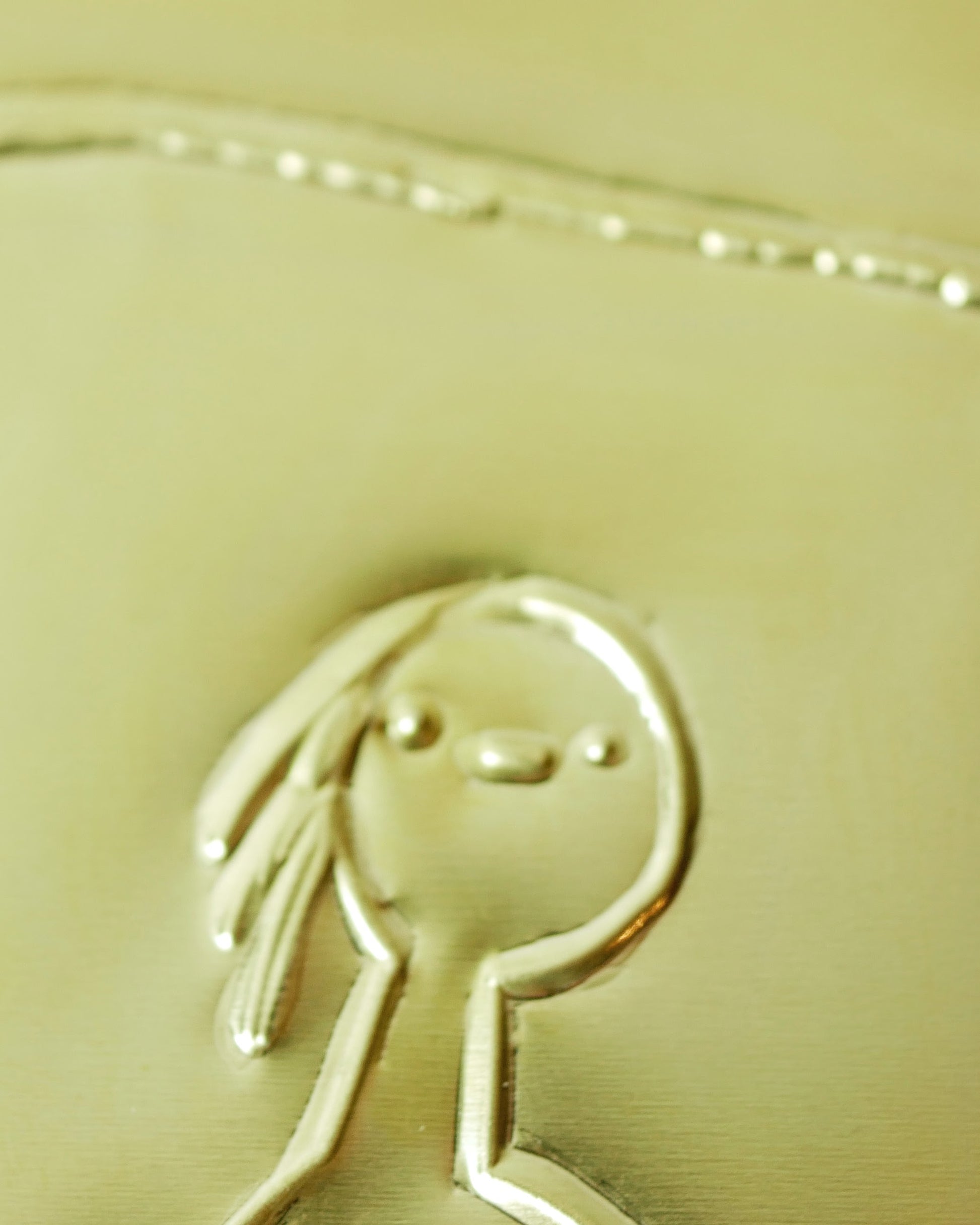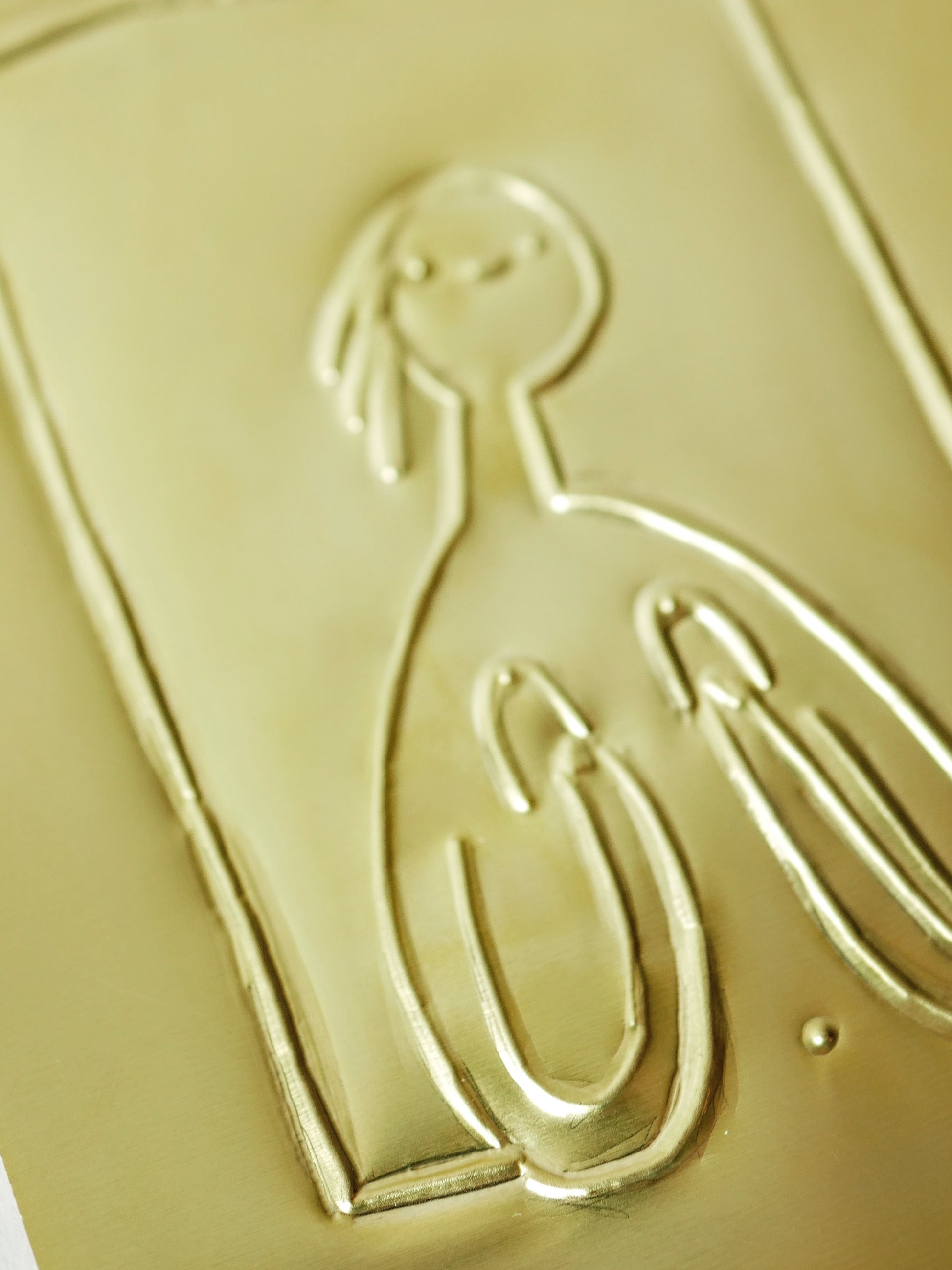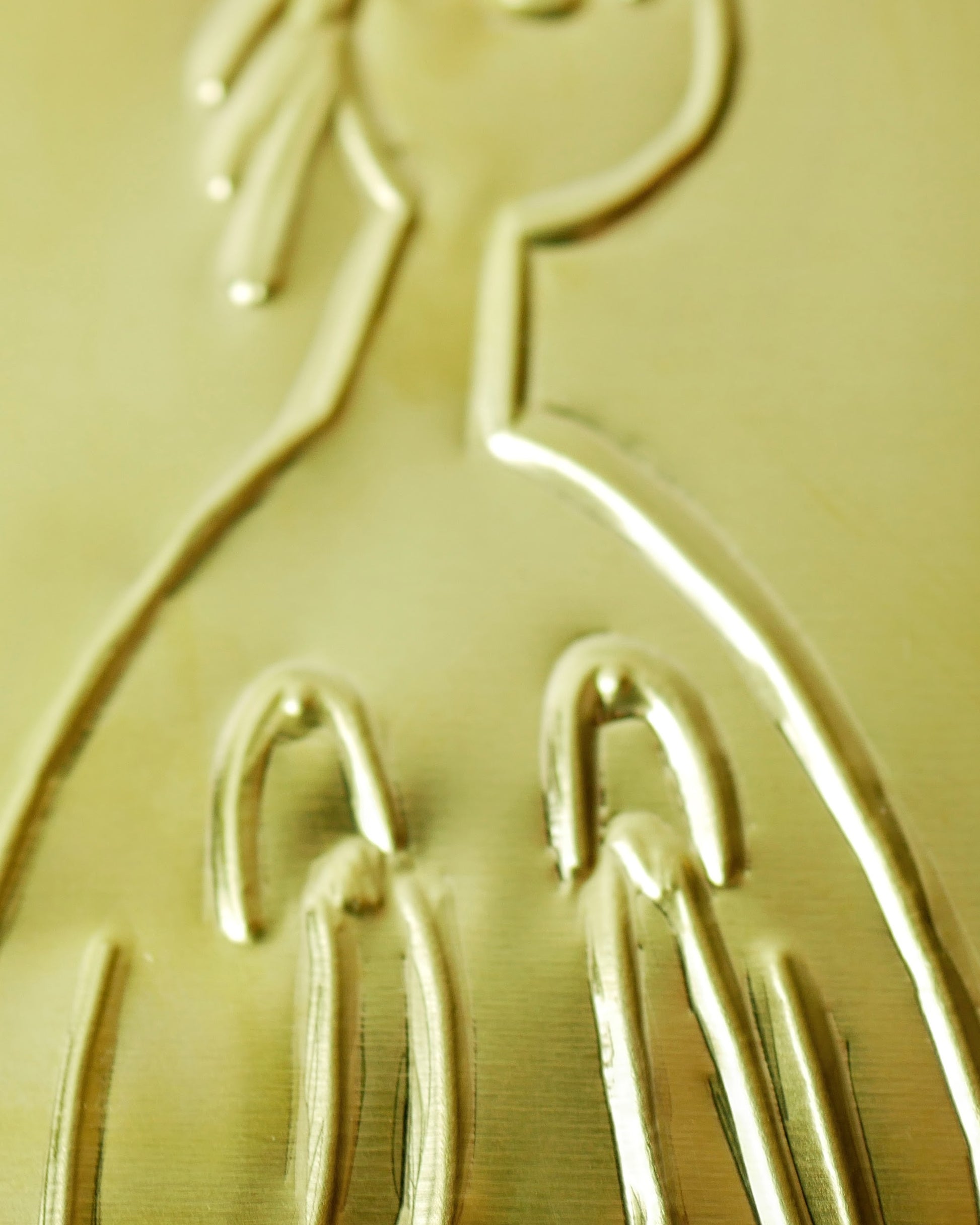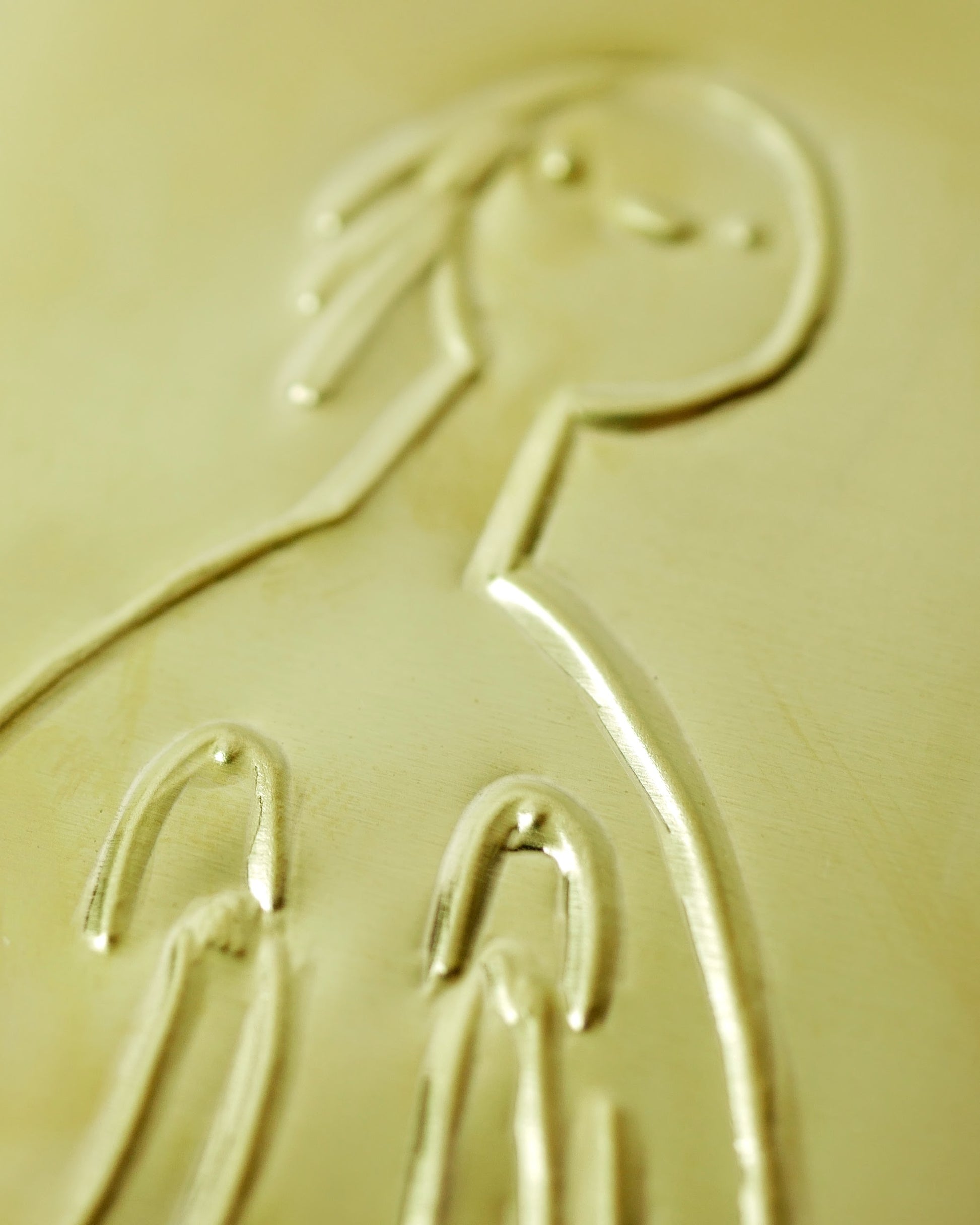Varje verk är präglat för hand i mässingsplåt och monterat på syrafritt akvarellpapper (180 gsm). En mening, omsorgsfullt vald ur en bok, förstärker motivet. Alla verk är original – det finns bara ett av varje.