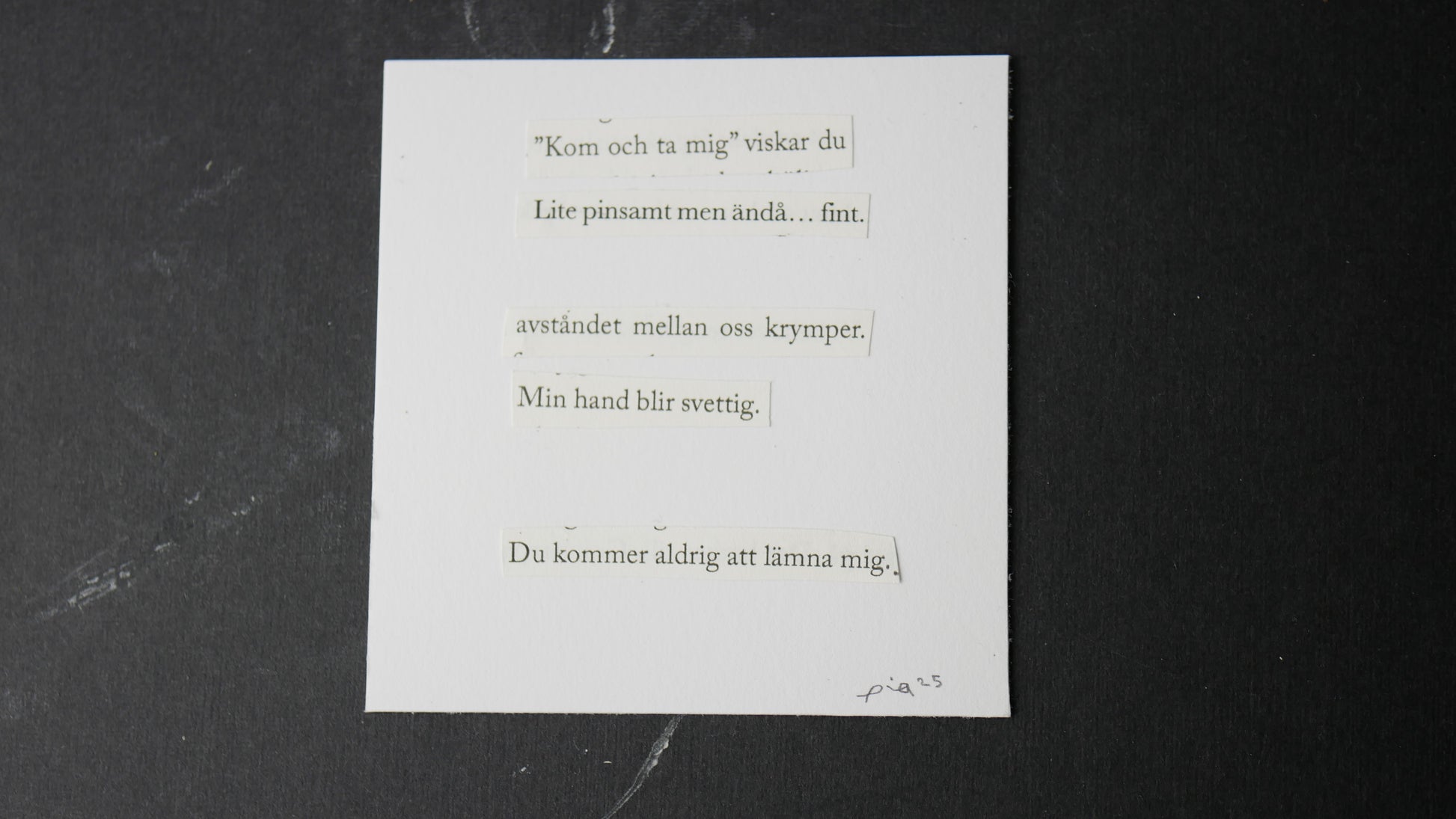 Allt jag gör har en berättelse bakom sig. Och eftersom varje par örhängen är ett litet konstverk för öronen, vill jag ibland låta orden följa med. En dikt, en mening, ett fragment som fördjupar känslan. Det här är de första örhängena som fått sin egen dikt. Små ord, lika unika som smyckena själva.