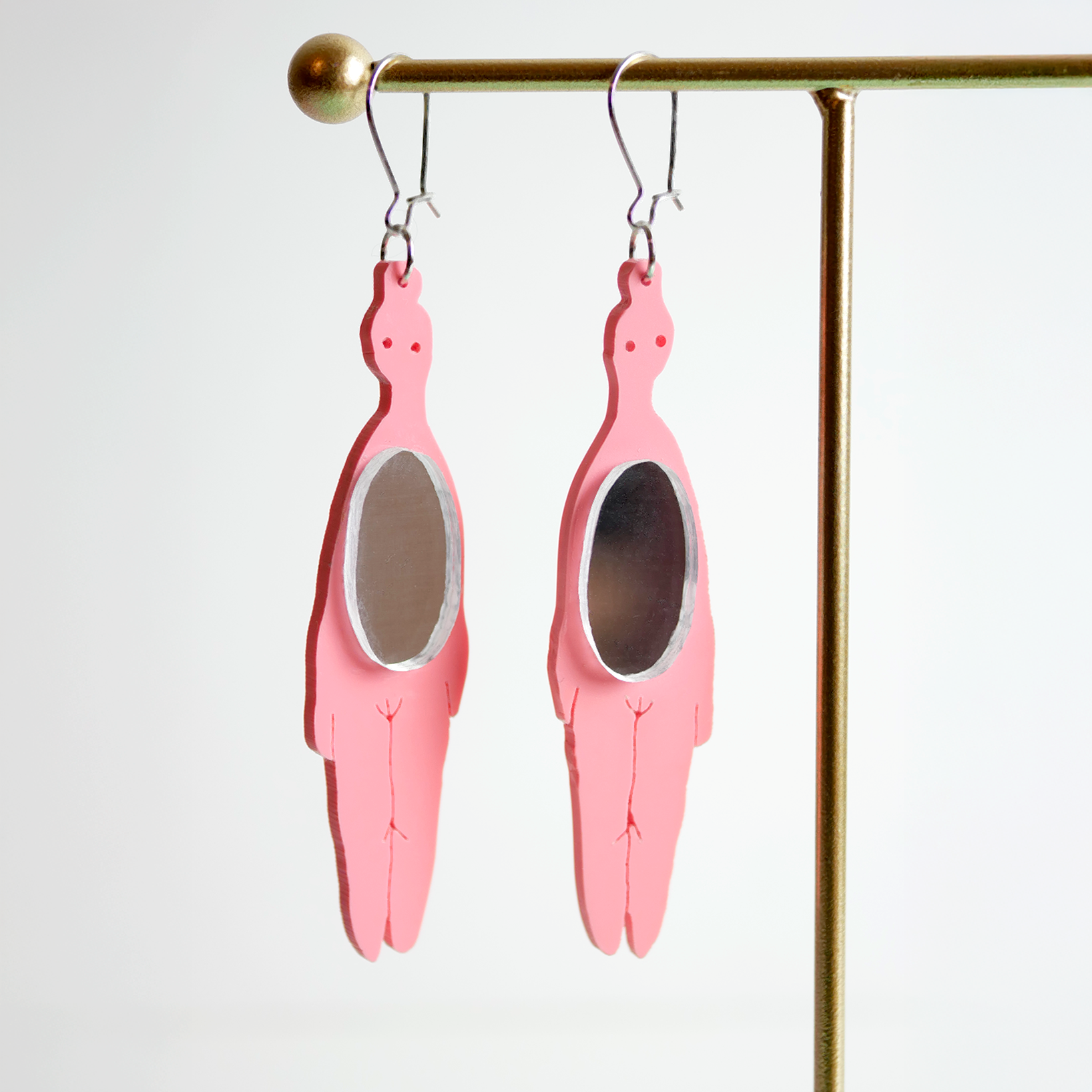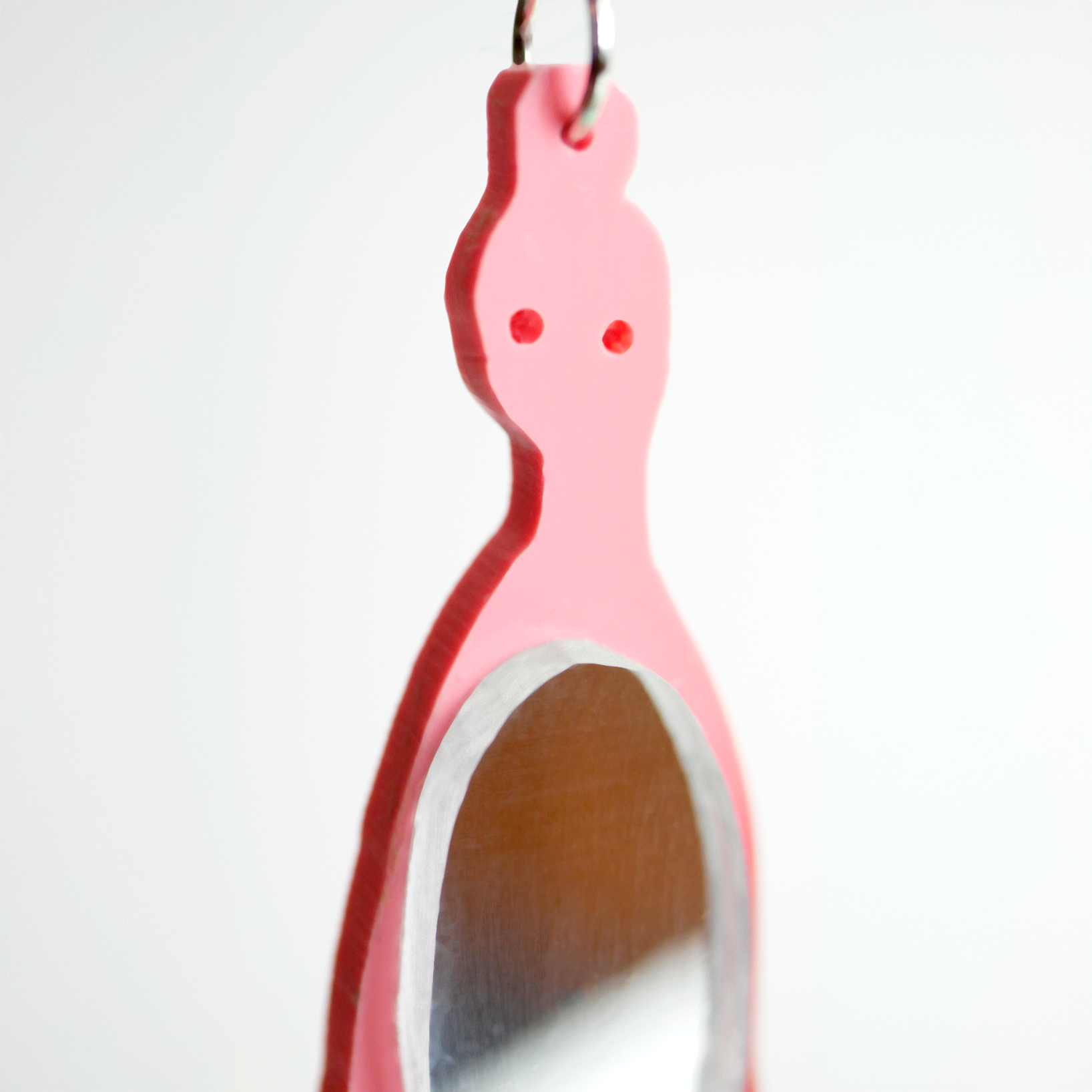 Det här örhänget är en hyllning till självreflektion och självkärlek. Spegeln på kroppen påminner oss om att vårt värde inte bara sitter i det vi visar utåt, utan i hela vårt väsen – vår kropp, vår själ och vår historia. Hur ser du på din kropp när du möter den speglad genom en annan?